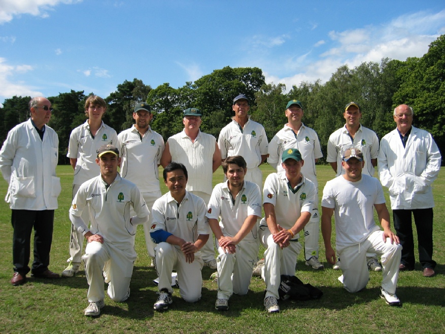 Back Row: Brian Morten (Umpire) Tom Heighes - Austin Sinclair - Craig Adams - Reg Leather - Paul Curtis - Dave Huntingford (Capt.) - Alan Freakes (Umpire)