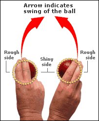 For example, an outswinger's grip will move towards the batsman in the air while an inswinger will move away from the bat.