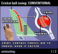 The straighter the seam when the ball is delivered, the greater the chance of swing, especially when the ball is older with one shiny and one rough side.