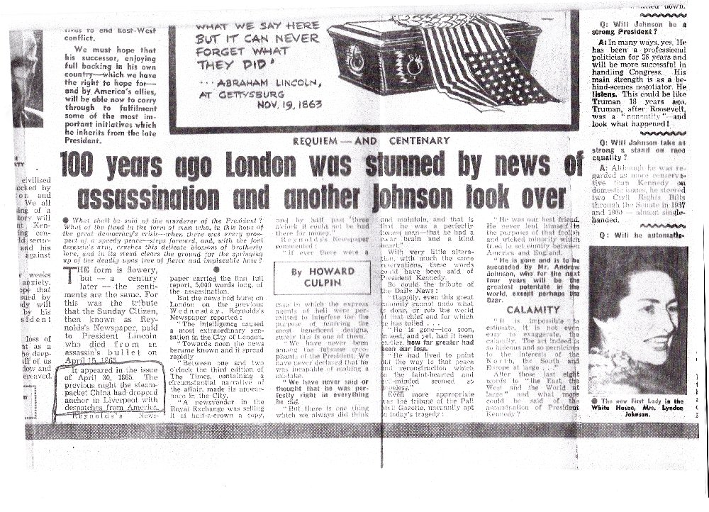 It appeared in the issue of April 30, 1865. The previous night the steam-packet China had dropped anchor in Liverpool with dispatches from America.